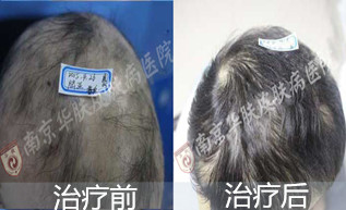 张主任:经过检测,微量元素的缺少也是一个原因。现在经过两个疗程了,领先个疗程后呢就有明显效果产生,第二个疗程后,大部分毛囊都生成。