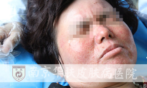 身边的朋友都知道刘姐的皮炎症状,为她四处打听治疗皮炎的好方法,辗转来到南京华肤皮肤病研究所,刚到医院的时候刘姐的脸部皮肤症状非常严重:皮肤大面积发红,满脸小疹子,并且脸颊出现“多毛症”。通过初步的皮肤专业诊断分析,初步判断为激素依赖性皮炎。