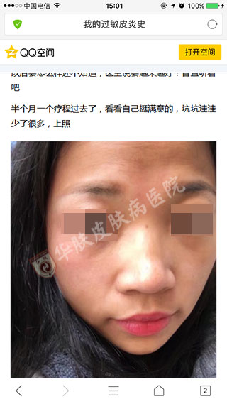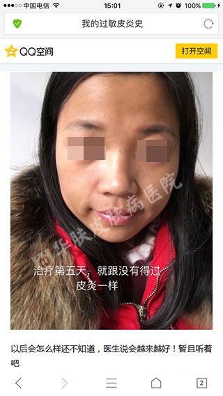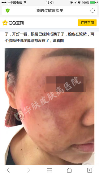 就这样王小姐被过敏性皮炎纠缠了近五年之久。一个偶然的机会遇到大学同学,跟她说起自己满脸的痘痘是在南京华肤皮肤病研究所治好的,而且她的妈妈过敏性紫癜也是华肤医院陈永芳主任治好的。于是王小姐便在网上搜索了关于陈永芳主任的相关信息:陈永芳,主任医生、教授。作为中医中药名家代表,曾多次参加国内外专业学术研讨交流活动,远赴美国、英国、丹麦、港澳台,对当地皮肤疾病临床治疗及研究机构进行临床技术指导和教学,“新型光动力免疫疗法”创始人之一,还是个书画家!经陈主任治愈的患者不计其数。这让王小姐非常高兴,于是在2017年12月24日平安夜,王小姐一个人便坐火车来到了南京华肤医院,并找到了陈永芳医生就诊。