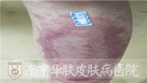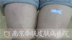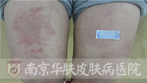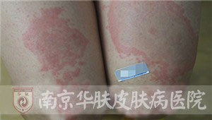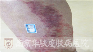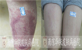 泰州王女士在老公陪同下,来到南京华肤皮肤病研究所求医,述说中透露着失望和无助。多次求医不见效,究竟是什么病? “我一辈子真没看到这么大的!”2015年5月19日,我院皮肤科专家组接诊了这例特殊的患者。当她拉起裤腿露出小腿上的皮损时,专家们都惊呆了!只见两块巨大的“空心”红斑,分别长在两个小腿上,边界清楚,差不多从膝盖一直蔓延到脚踝。