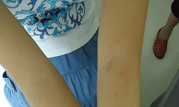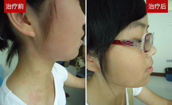 疾病概诉:小莉今年9岁,颈部、双臂、躯干出现红斑、风团,多方治疗未好。直到2017年4月底,小莉的母亲杨女士经朋友介绍带她来到了南京华肤皮肤病研究所就诊,1个疗程后治好,无发作迹象。