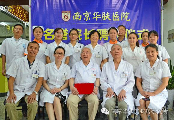 皮肤病泰斗与南京华肤皮肤病专家合影(从左至右:邢广梅、邢广梅、邢广梅、陈永芳、张荣法)