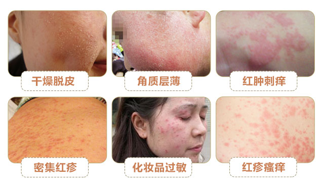 皮肤过敏:皮肤由于受到各种刺激,导致皮肤出现红肿,发痒、脱皮及过敏性皮炎等异常现象。