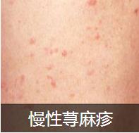 慢性荨麻疹:慢性荨麻疹是指由各种因素致使皮肤、黏膜、血管发生暂时性炎性充血与组织内水肿,病程超过6周者称为慢性荨麻疹。