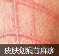 人工性荨麻疹:也称划痕性荨麻疹,是皮肤血管的过敏反应,是手抓或钝器造成皮肤划伤后,该处出现暂时性红色条状隆起,多不伴有瘙痒或其它不适的感觉。