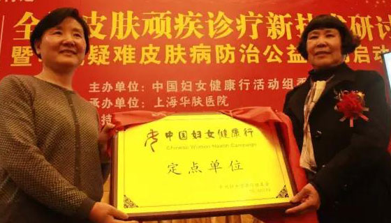 通过前期对华肤医院软硬件实力、专家队伍、技术开展能力、治疗效果等综合指标的评估,在 “2017全国皮肤顽疾诊疗新技术研讨会暨申城疑难皮肤病防治公益活动”中,组委会授予华肤上海总院“中国妇女健康行定点单位”。