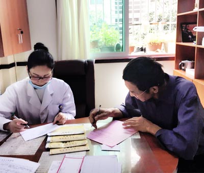 这是史先生第三次来到南京华肤皮肤病研究所,再一次感受到来自医院医生护士的热情和无微不至的关怀,一入院,史大爷就迫不及待提笔写下感谢信,笔力虬劲、满含深情。