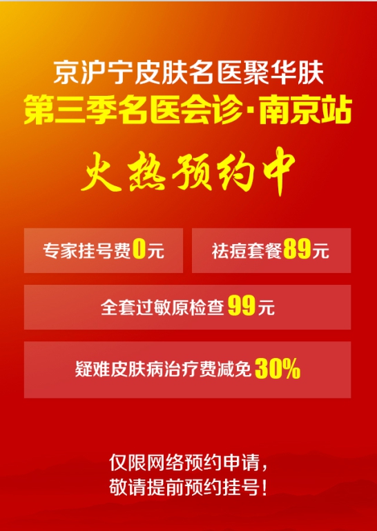 2018年度最大规模的一次专家会诊即将在南京华肤启动,预约通道已正式开启!在南京,即可看上海-北京皮肤专家。机会难得,